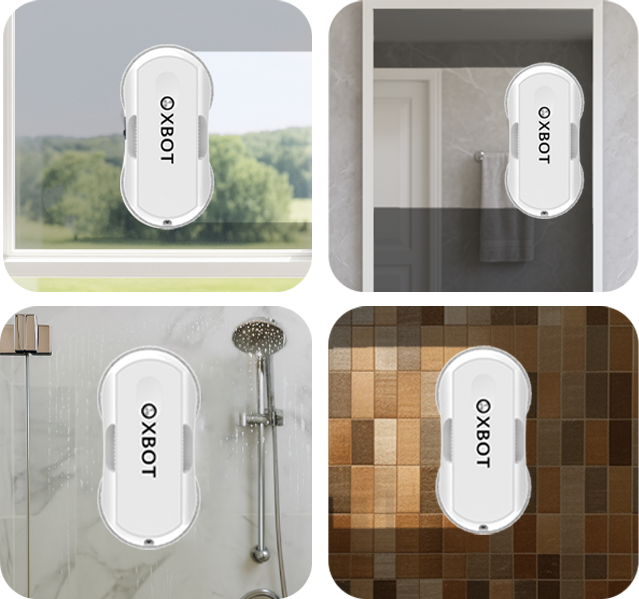 Xbot B20 эффективно работает на разных поверхностях: окнах, зеркалах, витринах, стеклянных дверях, перегородках, столах и даже стенах, покрытых обоями.