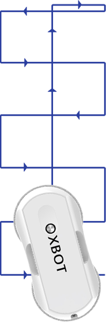 Робот-мойщик окон двигается по стеклу с помощью двух вращающих дисков с насадками на них в виде салфеток из микрофибры. Вначале цикла уборки устройство автоматически поднимается к верхней точке на поверхности и зигзагообразными движениями проходит всю площадь. Xbot очищает стекло подобно движению руки человека, поэтому результаты мойки всегда на высоте.