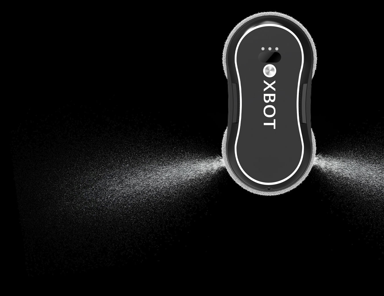Робот распыляет воду на стекло с помощью двух форсунок. Жидкость обильно увлажняет поверхность, размягчая загрязнения. После этого робот эффективно удаляет их салфеткой.