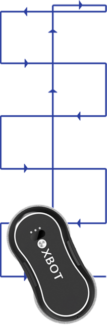 Робот в автоматическом режиме уборки использует следующий алгоритм: поднимается к верхней точке поверхности и зигзагообразными движениями проходит площадь параллельным и линиями. При этом устройство во время рабочего цикла имитирует движения руки человека, что обеспечивает высокое качество очистки.